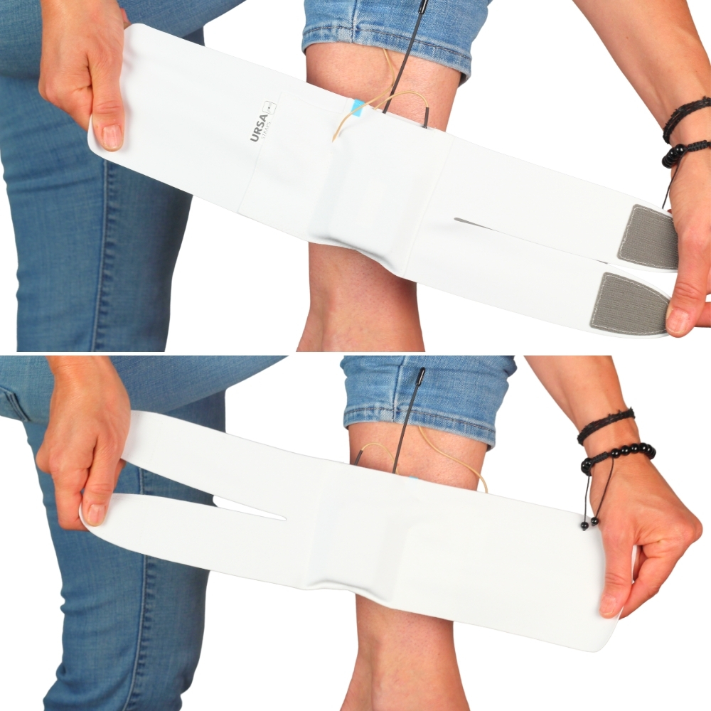 URSA Straps are not made from Neoprene or Elastic. We have developed a brand new bonded fabric specifically for purpose. Our fabric is ultra-slim at 1mm thick. It provides excellent stretch, comfort against skin and breathability with an outer surface which hook Velcro can attach to at any point.