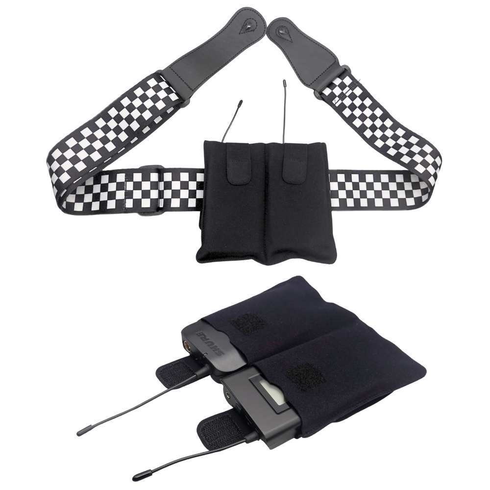 Double Pouch - can accommodate two large transmitters / receivers from Sennheiser, Shure, SubZero, LD Systems, & More.