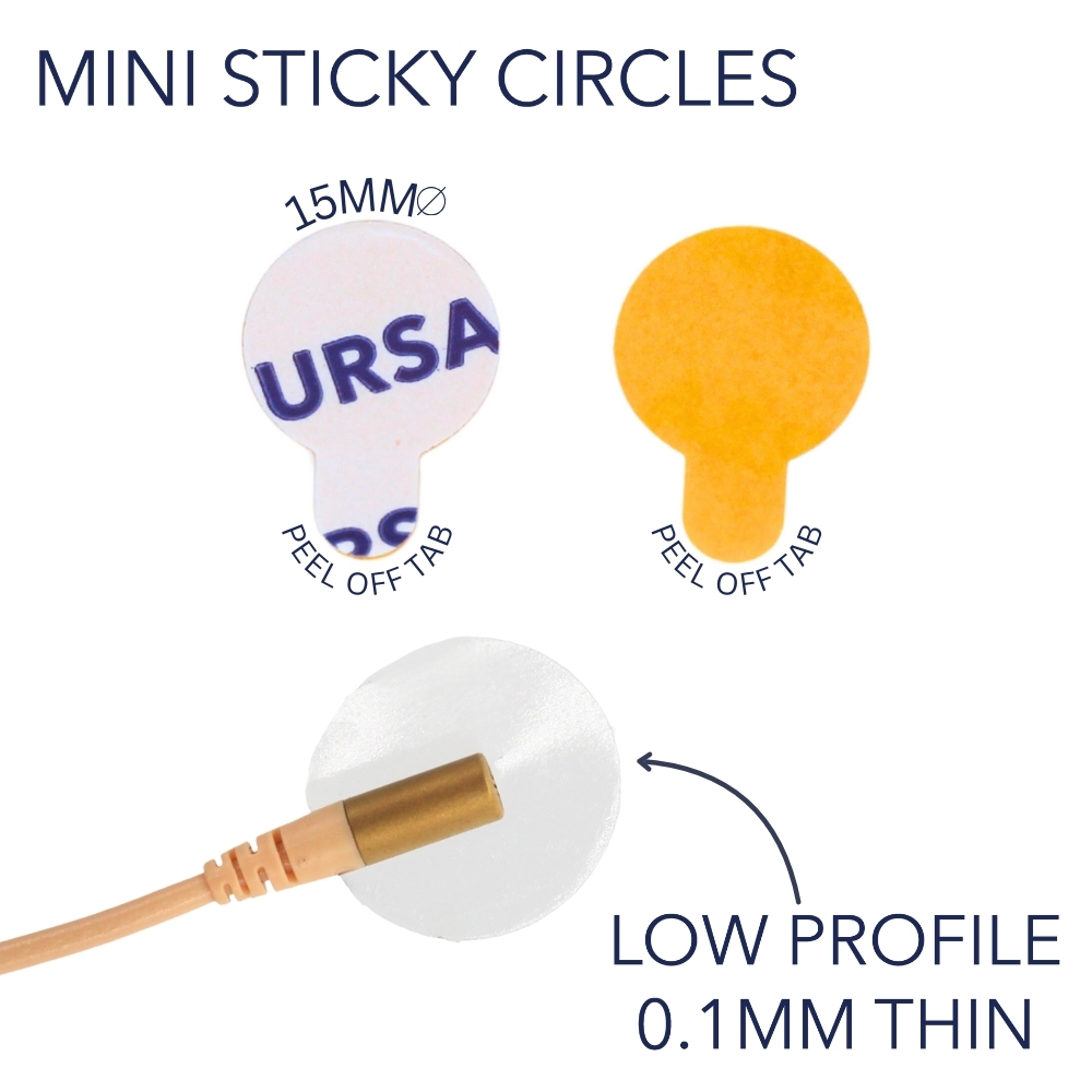 Pack of 90 hypoallergenic 15 mm Sticky Circles. Clear low profile sticky tape. Leaves no residue. Compatible with Ursa Circles and Lav Mounts.