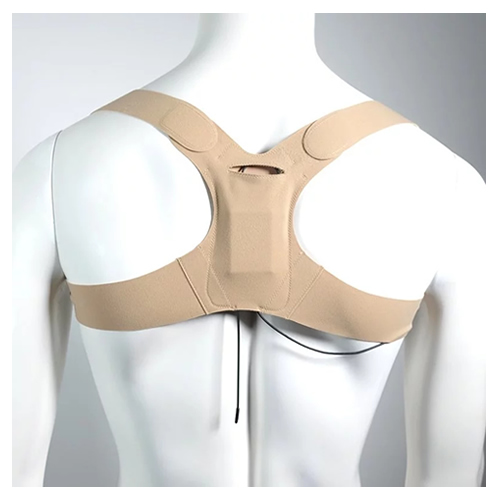 more details >Medium beige back strap for mic placement between the shoulder blades