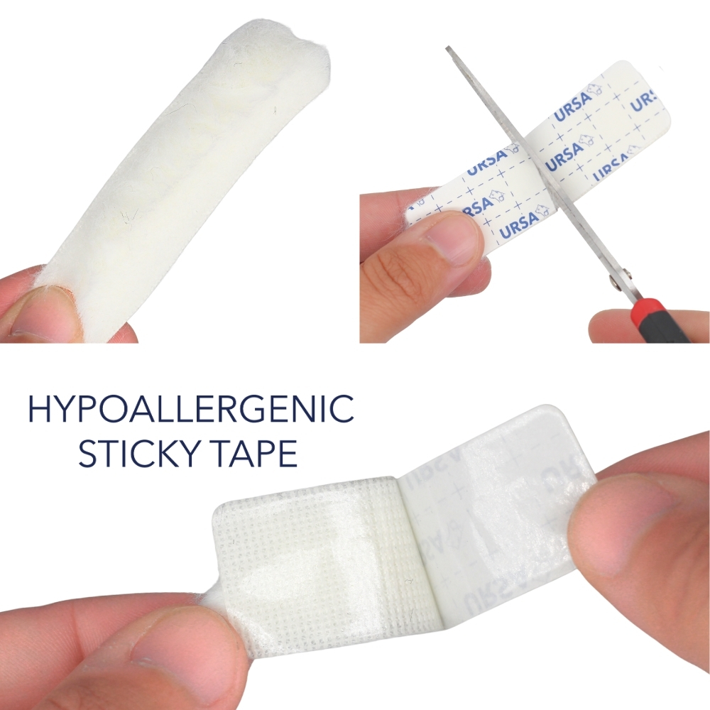Adhesive: Hypoallergenic residue free sticky tape